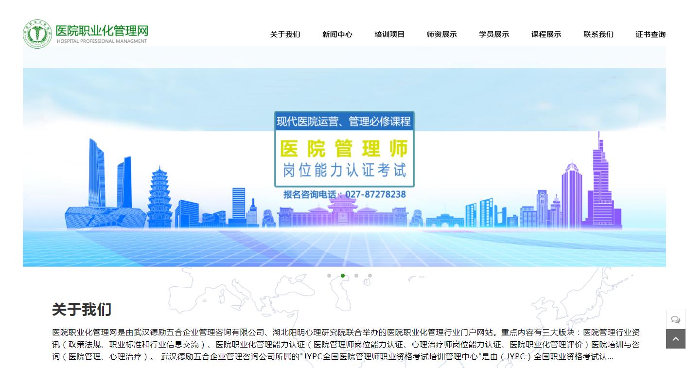 熱烈慶祝醫(yī)院職業(yè)化管理網(wǎng)網(wǎng)站制作完成并上線!醫(yī)院職業(yè)化管理網(wǎng)是由武漢德勵(lì)五合企業(yè)管理咨詢有限公司、湖北陽明心理研究院聯(lián)合舉辦的醫(yī)院職業(yè)化管理行業(yè)門戶網(wǎng)站。