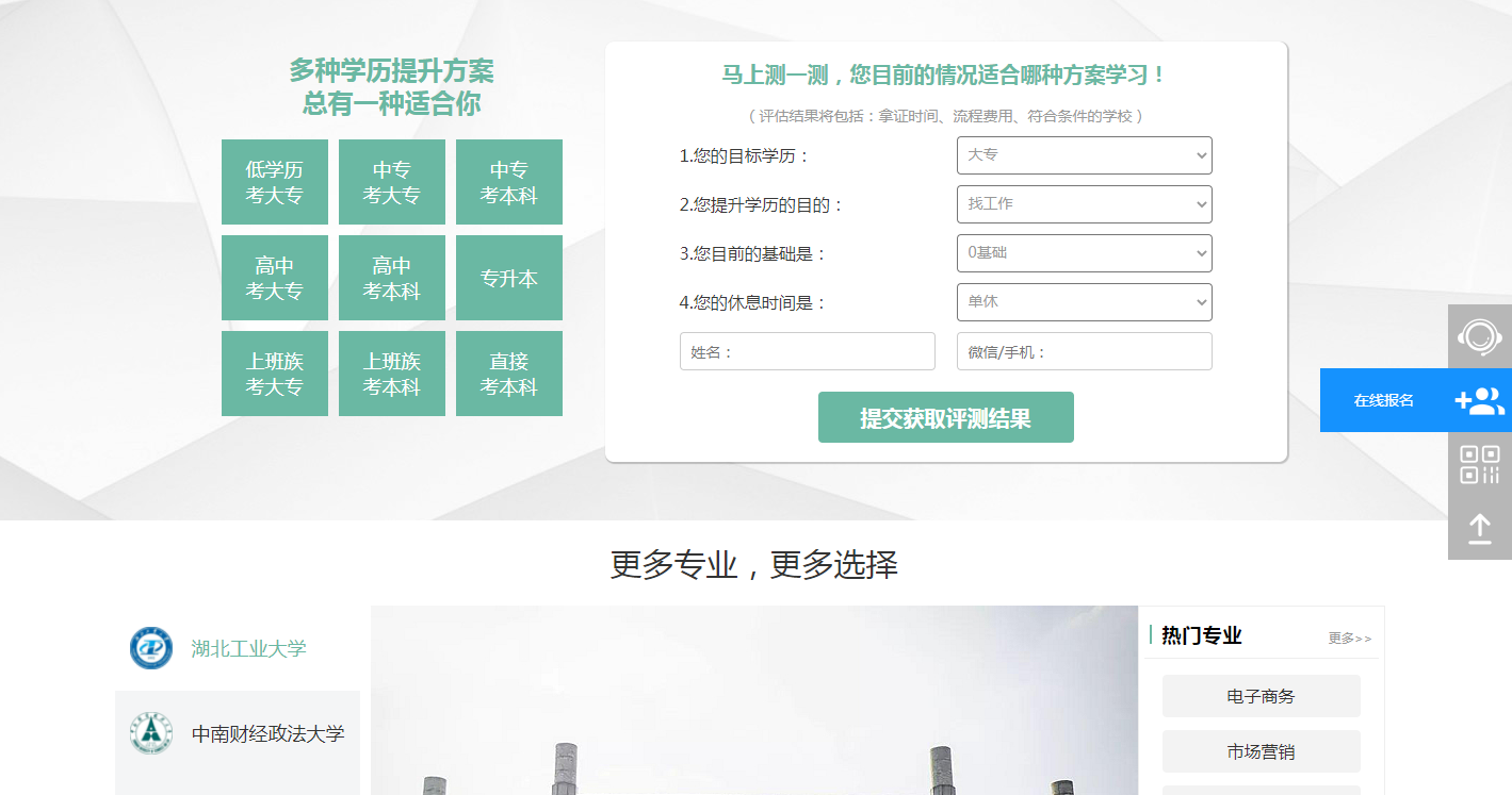 熱烈慶祝湖北遠程與繼續(xù)教育網(wǎng)網(wǎng)站制作完成并上線!湖北遠程與繼續(xù)教育網(wǎng)隸屬于武漢華夏志誠教育咨詢有限公司,多年來深耕教育事業(yè),主要服務項目包括???、本科學歷提升信息咨詢及考前輔導。 發(fā)展至今已成為以學歷教育為基礎,提升學員社會競爭力為核心,為廣大學員提供便利,多年來獲得了廣大考生的一直好評。