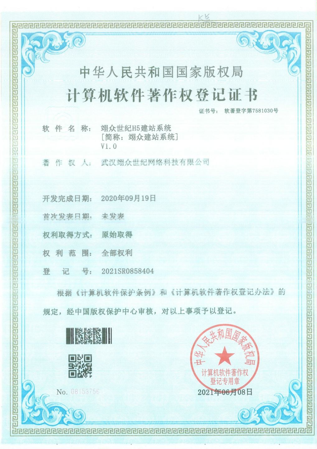 等了好幾個月,我們的翊眾世紀建站系統(tǒng)軟件著作權(quán)證書終于下發(fā),該系統(tǒng)已于2021年10月1日發(fā)布,現(xiàn)在的H5模板網(wǎng)站就是用的這套系統(tǒng)【即客網(wǎng)是公司為這套系統(tǒng)注冊的品牌】,快來瞅瞅: