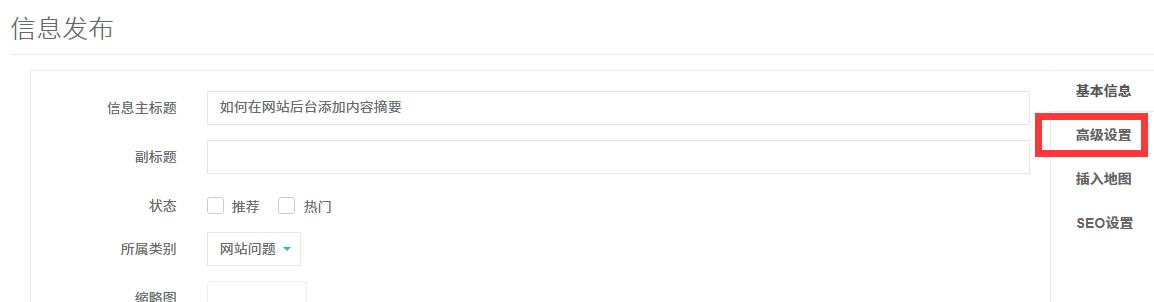 2.信息發(fā)布右側(cè)右上角點擊【高級設(shè)置】