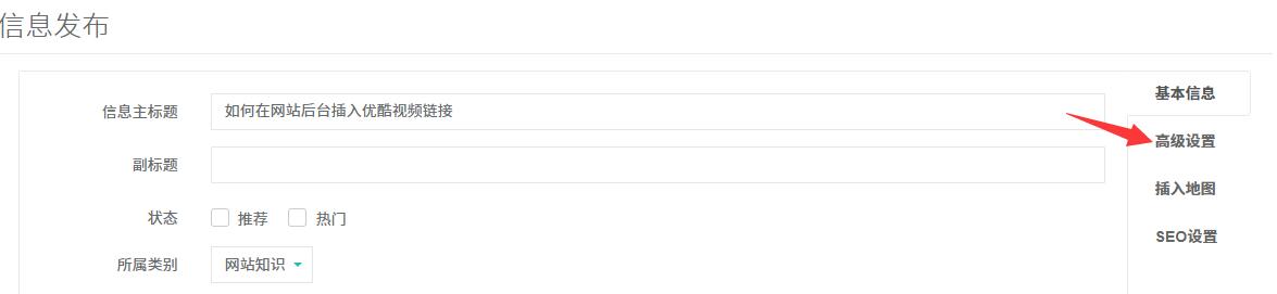 3. 進(jìn)入【高級(jí)設(shè)置】,在第三方視頻網(wǎng)址【輸入優(yōu)酷視頻播放鏈接地址】