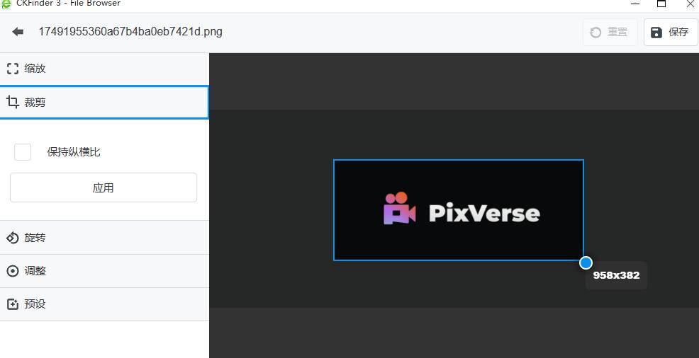 3.點(diǎn)擊左側(cè)【裁剪】,在選取區(qū)域進(jìn)行裁剪,點(diǎn)擊右上角【保存】