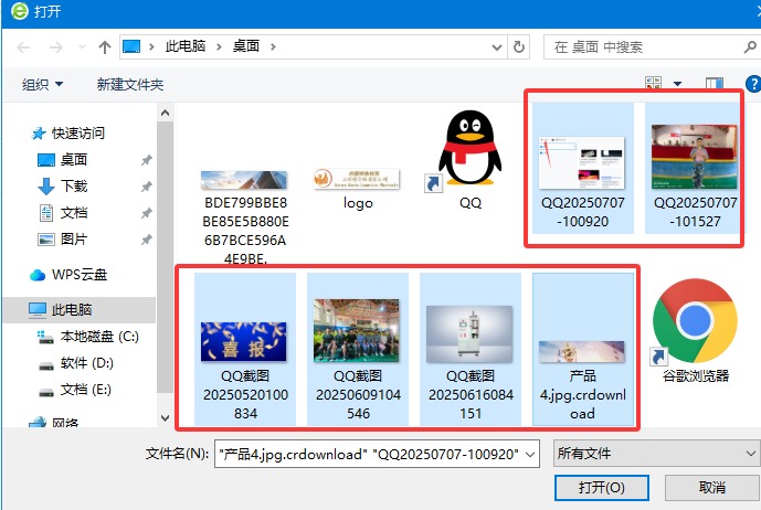 4.在彈出的頁面中,選擇多張圖片時需按住ctrl,再選擇多張圖片,選中的圖片會呈現(xiàn)藍(lán)色,點擊右下角【打開】,即多張圖片同時上傳到后臺