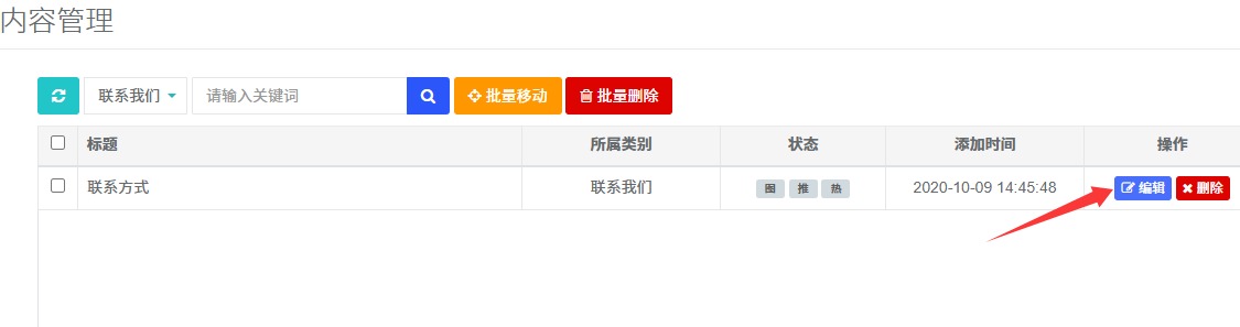2.進(jìn)入內(nèi)容管理,搜索找到聯(lián)系我們,點擊右側(cè)【編輯】