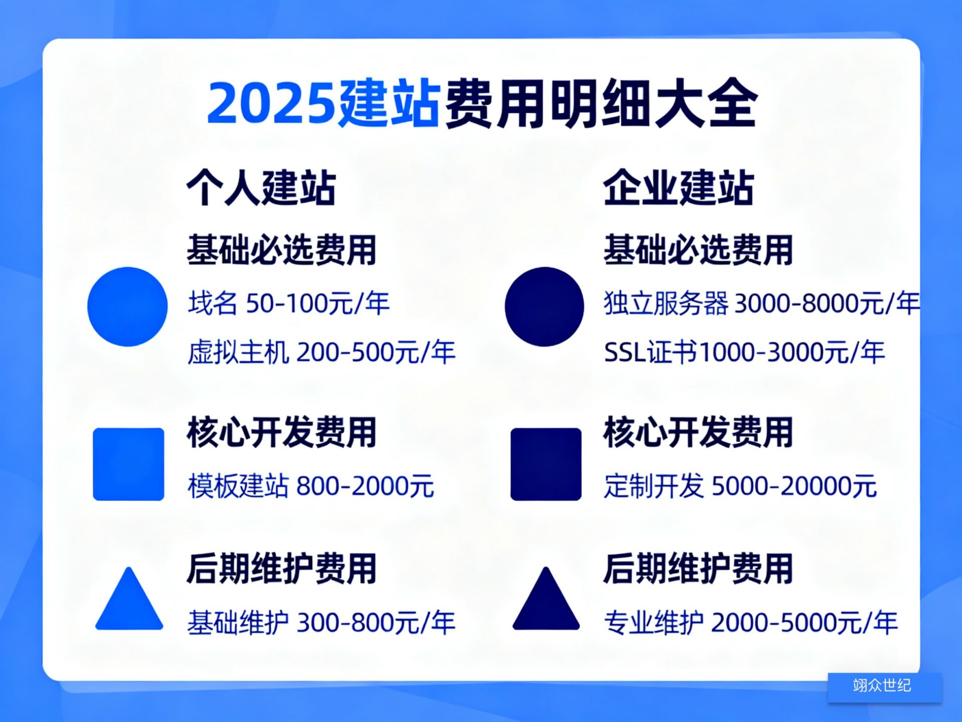答:2025年建站費用從千元到數(shù)十萬元不等,核心由「基礎(chǔ)必選 + 開發(fā)核心 + 后期維護(hù)」三部分構(gòu)成,個人與企業(yè)差異顯著:?