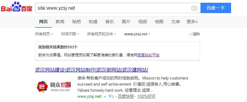 做網(wǎng)站seo優(yōu)化的肯定都知道如何查詢網(wǎng)站收錄的數(shù)據(jù)吧,知道怎么查詢肯定知道“site”指令了。對,我們所謂的收錄就是通過“site”指令查詢得出的。下面以翊眾世紀為例,給大家展示如下圖:
